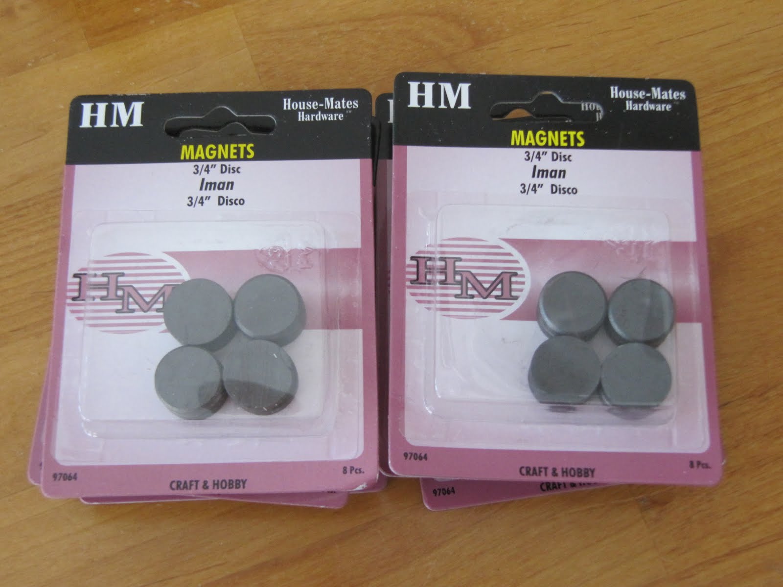 Now you will need magnets. Not sure how much they are in the craft store, but these are at Home Depot for only $2.49 for 8 magnets. I used the 3/4" round thicker ones for more strength.
