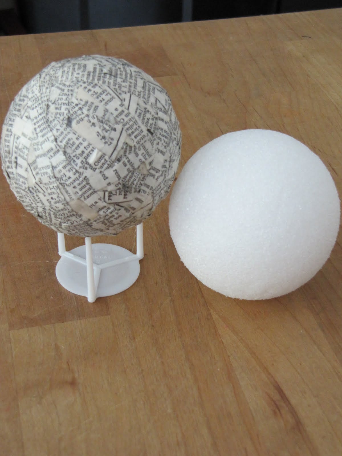 Another drying support especially when using glue or Mod Podge. I made these balls with shredded old book pages. Can't let the glue dry right there on the table, because it would glue itself right to the surface. These supports are plastic, so nothing really sticks to the little spikes and the air circulates all around.