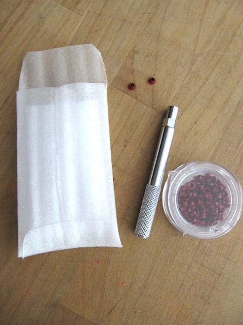 Little grommets and the hammering tool they come with.