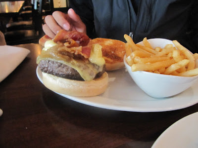 Now onto the burgers...Gorgonzola with sautéed mushrooms and shallots for all the girls. We ordered broccoli because we like it, but also to relive some of the guilt!! LOL