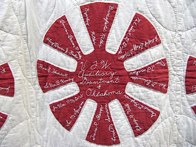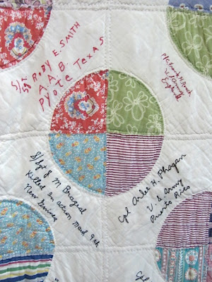 ReplyDeletewhat a great exhibition! we suffered as a country too in World War II ánd we have a flag with the same colors: red white and blue. So these quilts are very appealing. Love the stitched names!